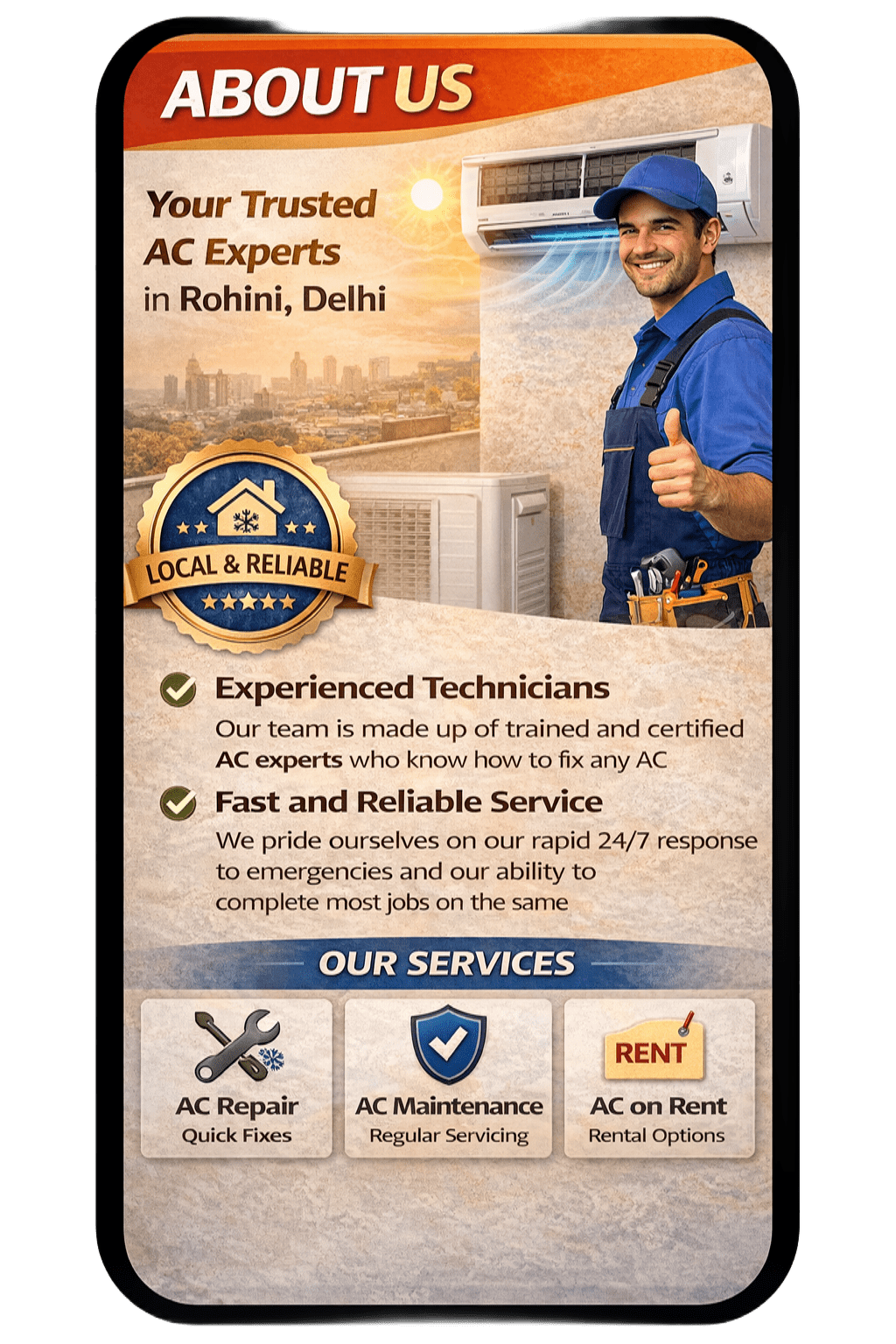 At SHRI JAGANNATH AC SERVICE CENTRE, we provide fast, reliable, and affordable AC services in Rohini, Delhi. With years of experience, our expert technicians specialize in AC repair, installation, and maintenance for both homes and businesses.